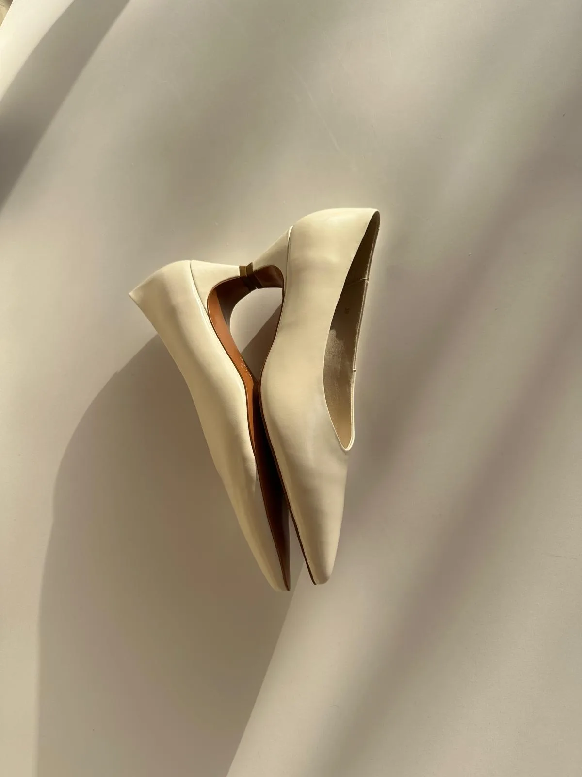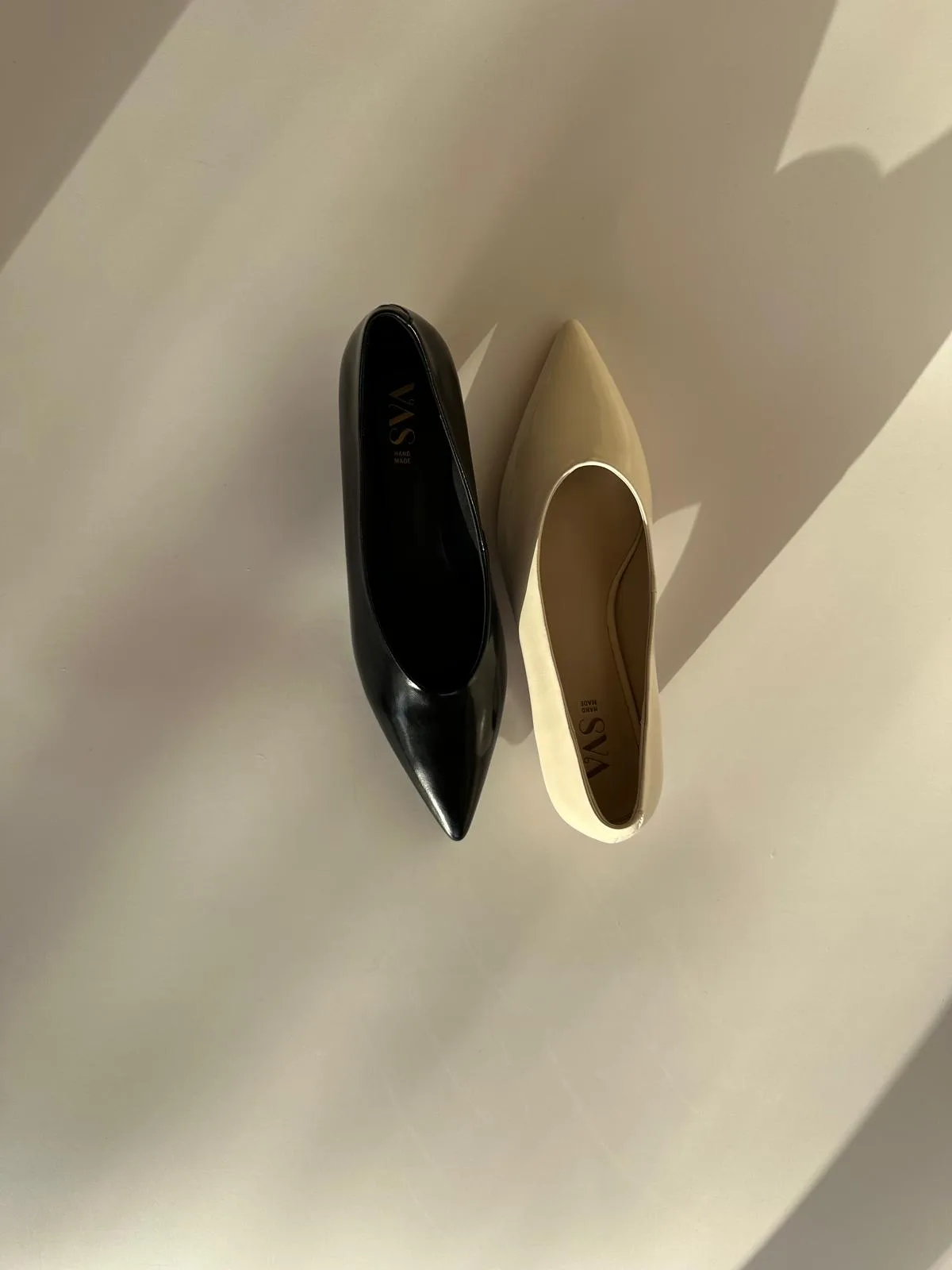 Molded after the most classic form with sharply and unique pointed toe that add spice to any look