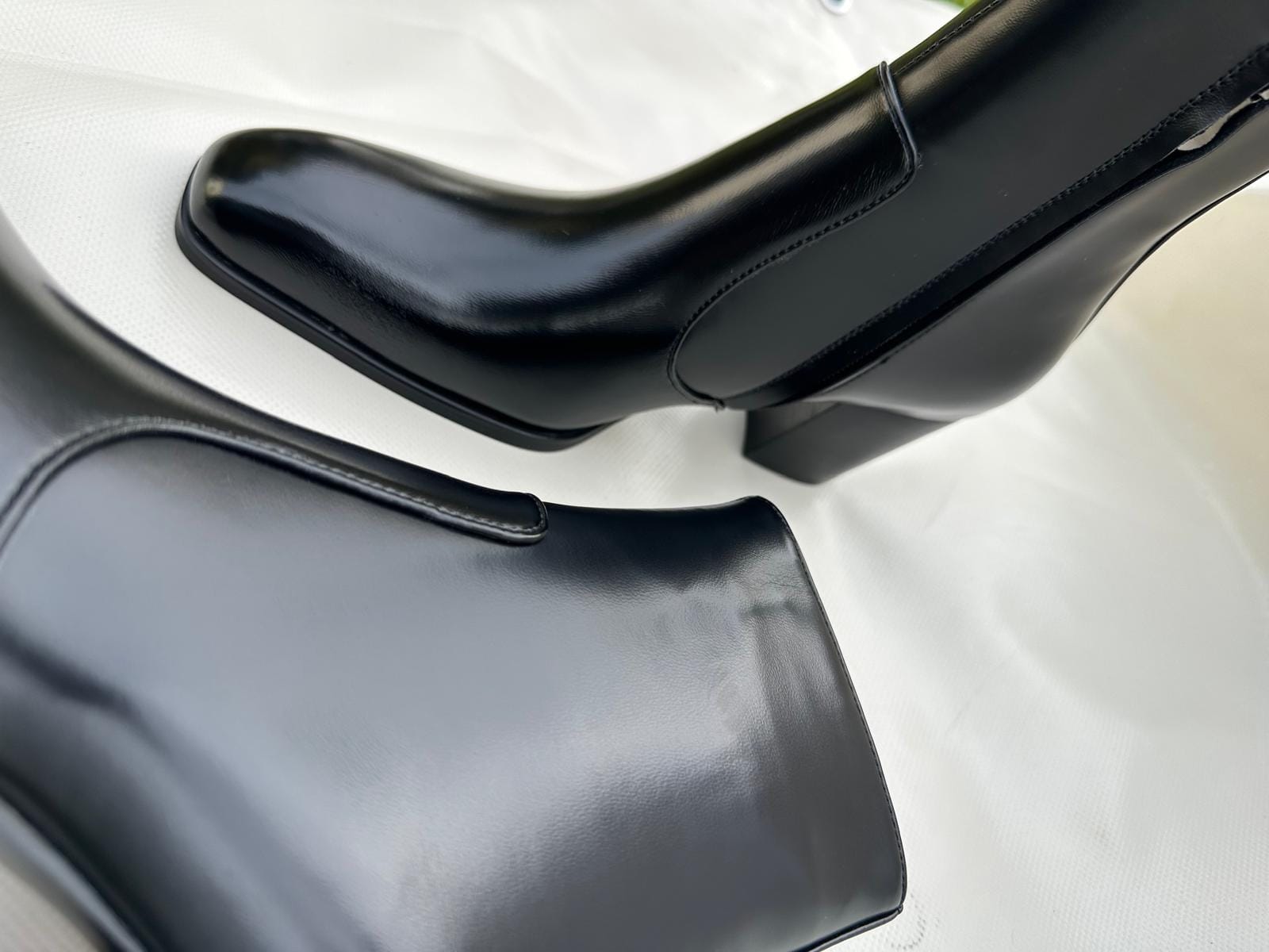 • Elongated square-toe silhouette