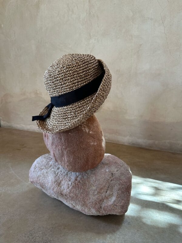 Woven by hand in Japan, this raffia hat brings together the subtle elegance of natural materials with traditional craftsmanship. Its soft, breathable structure makes it ideal for warm weather, while its timeless design complements any look.