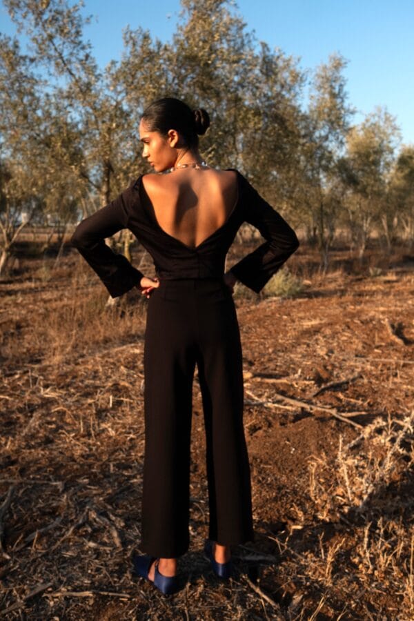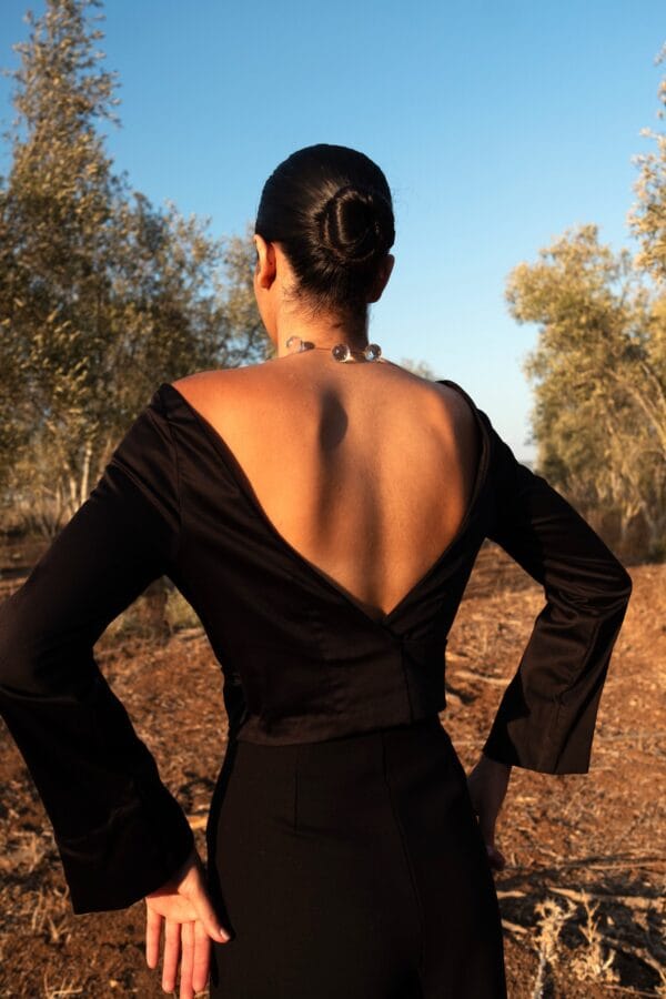• Open back for a bold, feminine touch