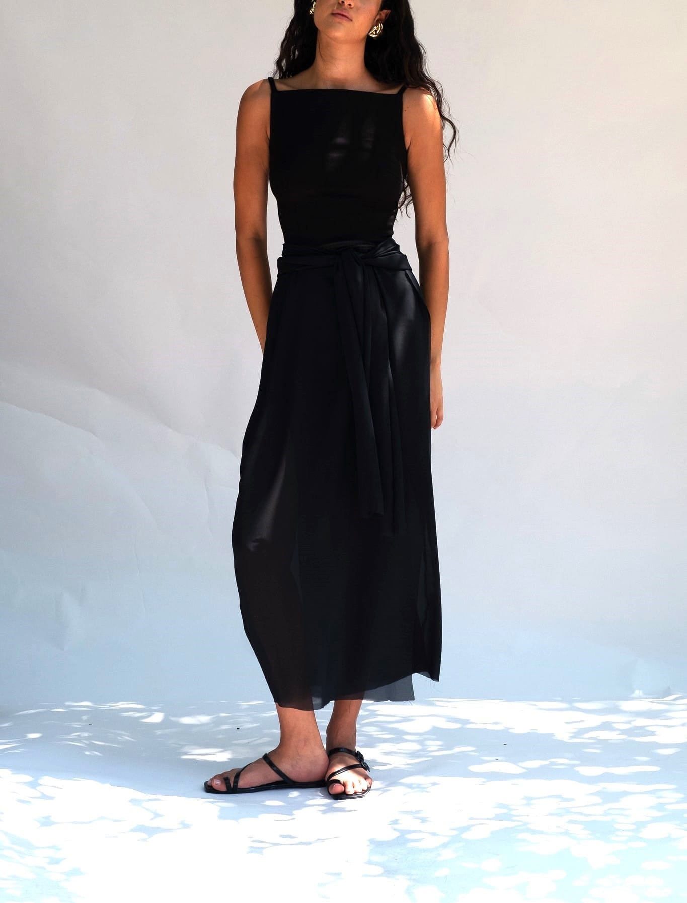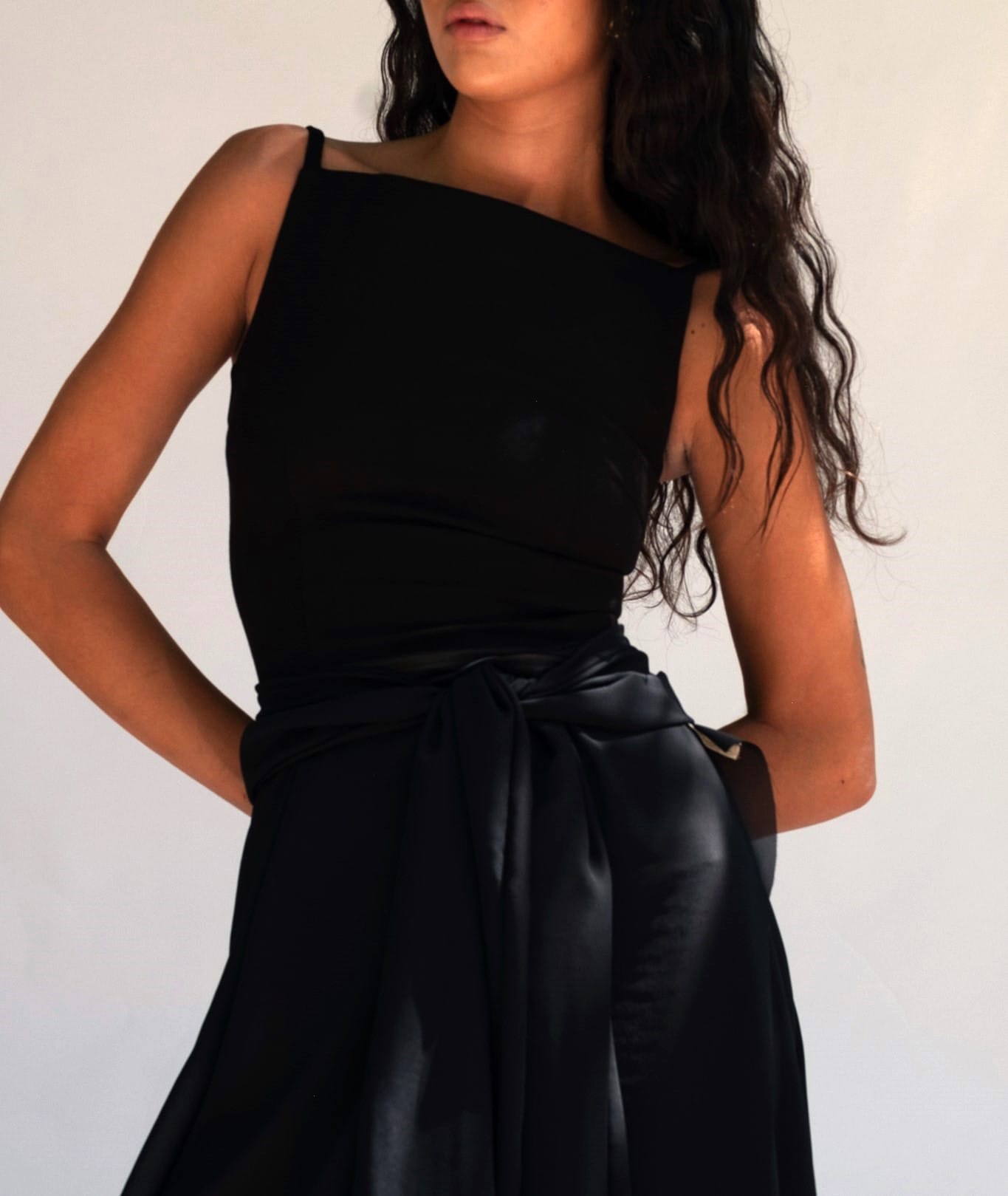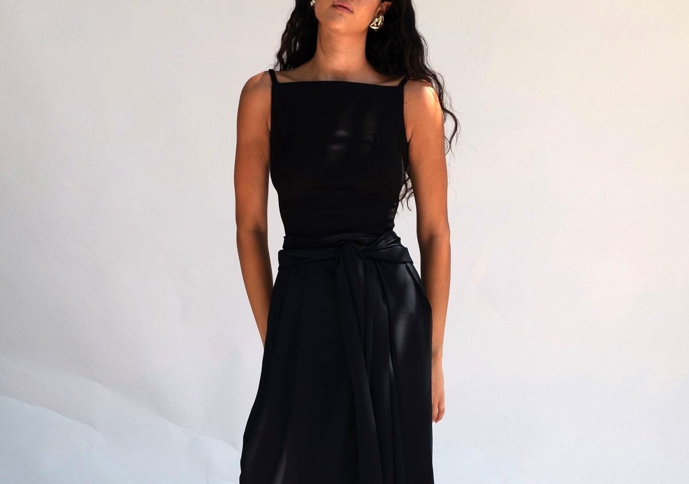 “Streamlined and sculptural, this fitted tank top embodies refined minimalism with a bold modern edge.”