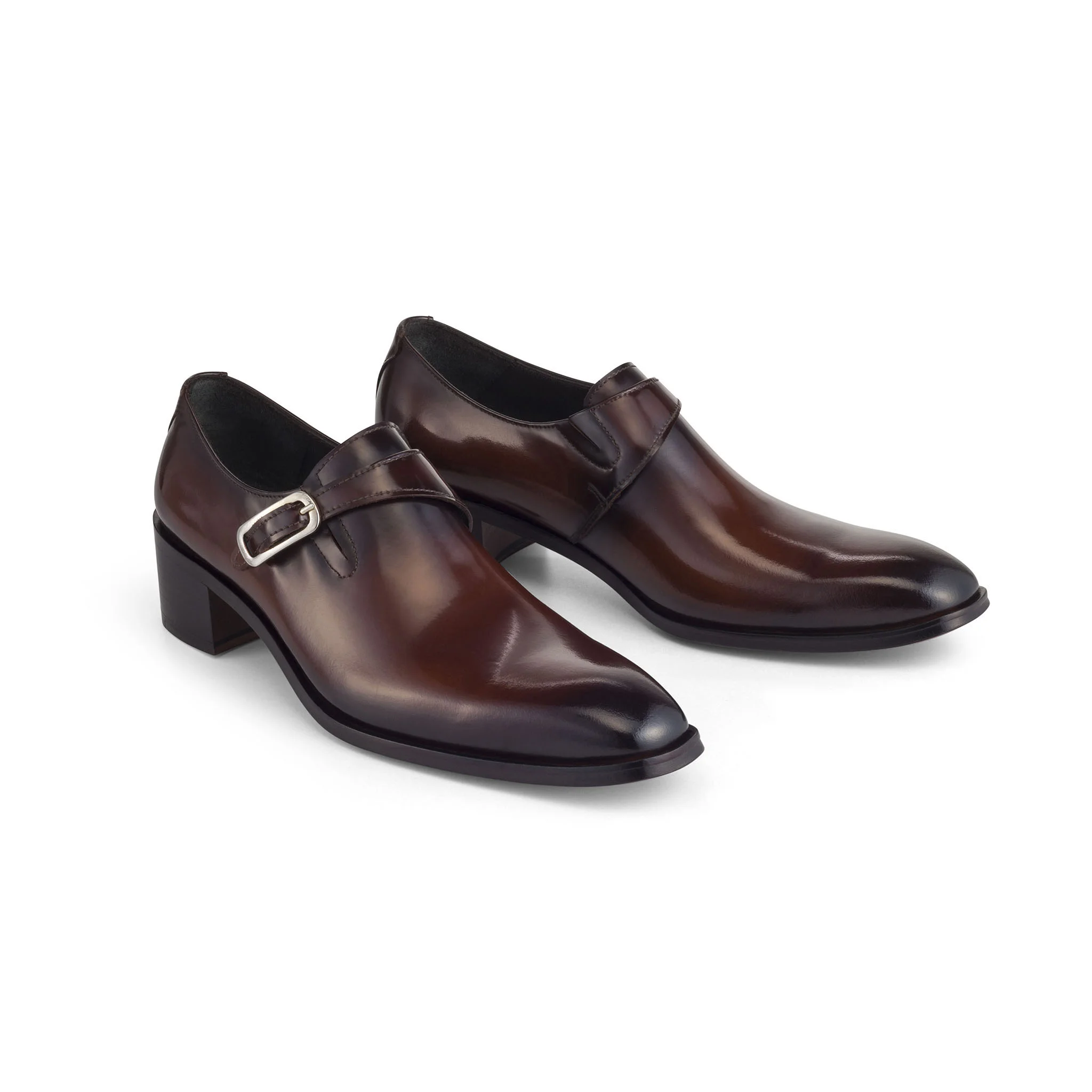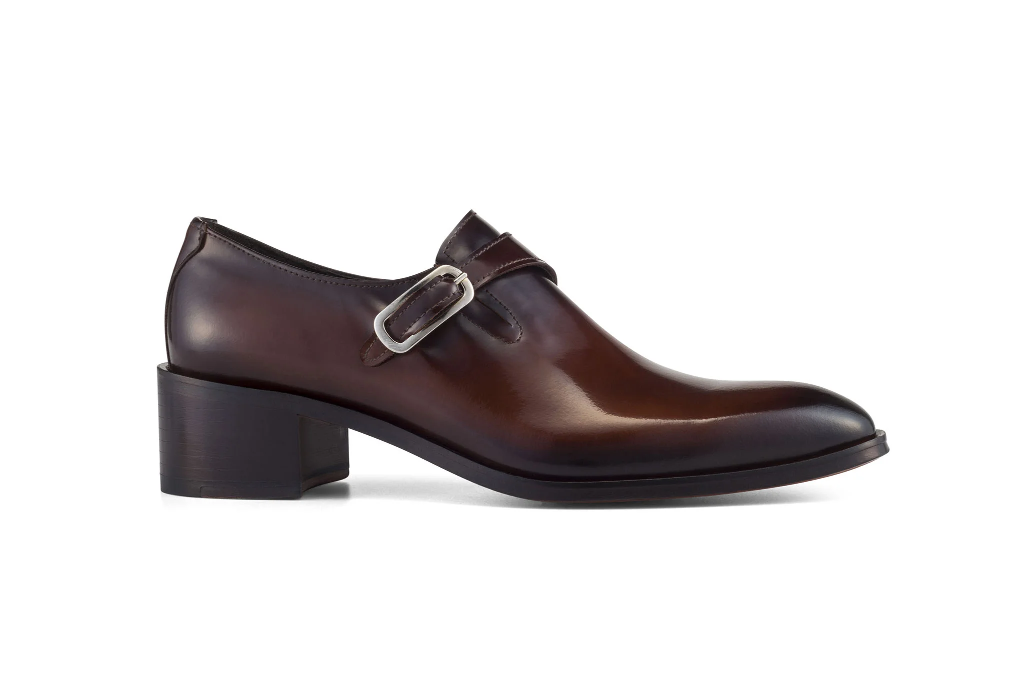 A flirtation between traditionally made brogue shoes and the female form, Roberta’s style is bold and sophisticated for versatile day to day wear. Elegant caramel burnished leather, molded square toe cap with monk strap fastening and gold buckle, a nod to tradition with a feminine finish. Featuring an elastic gusset and supple leather lining for smooth all day comfort. Beautifully crafted leather sole with rubber heel guard, these are made to last. Pairs well with tailored cropped pants or feminine skirts.