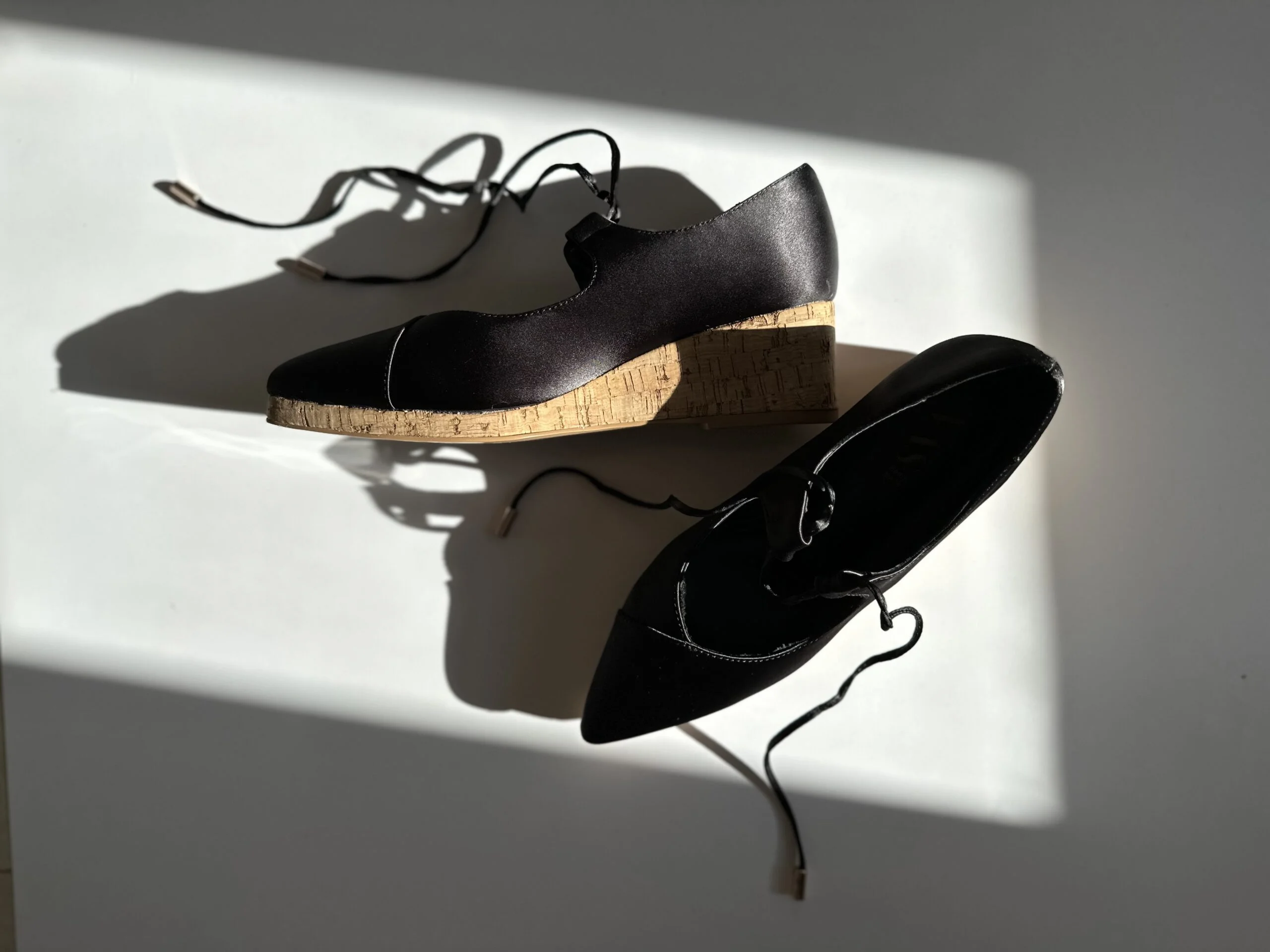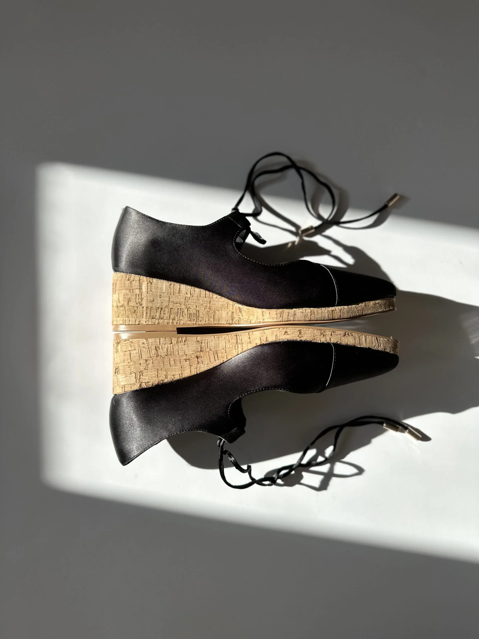 * they’re set on a wedge platform, covered with cork