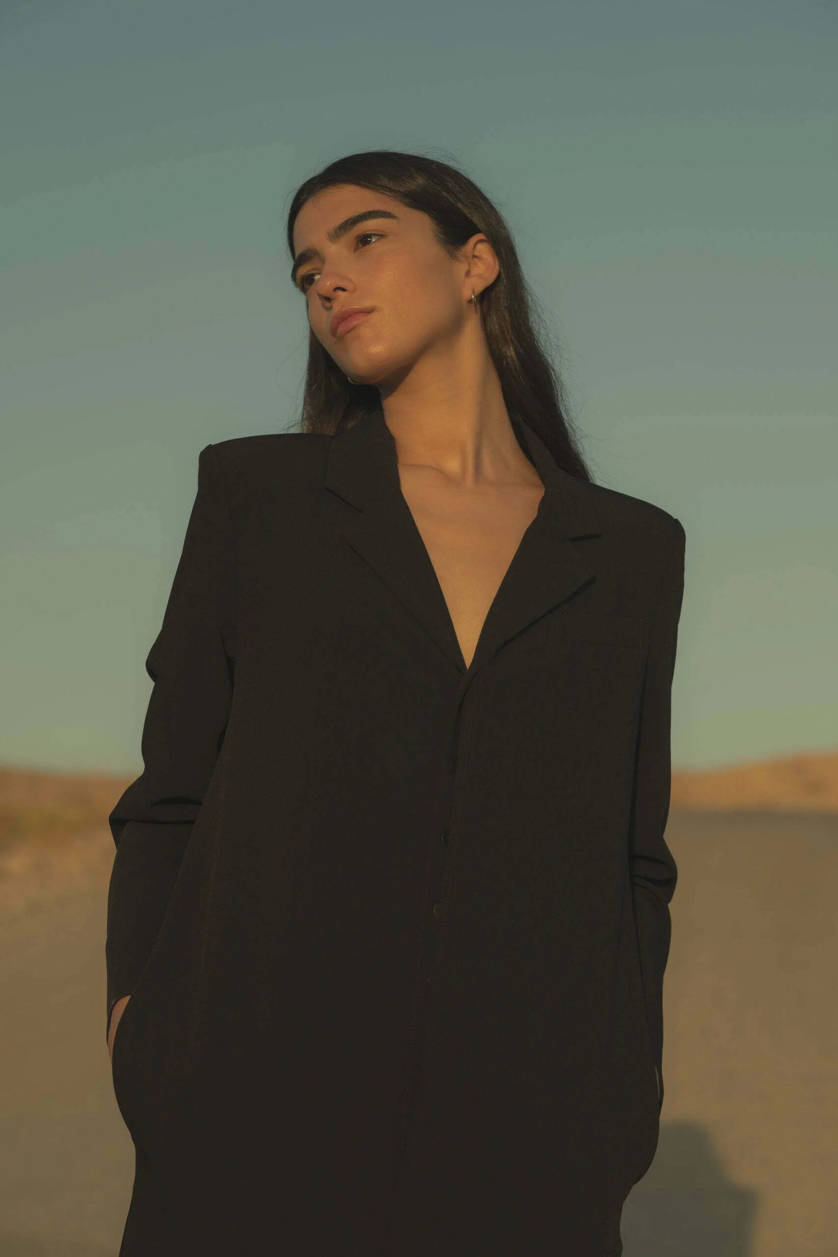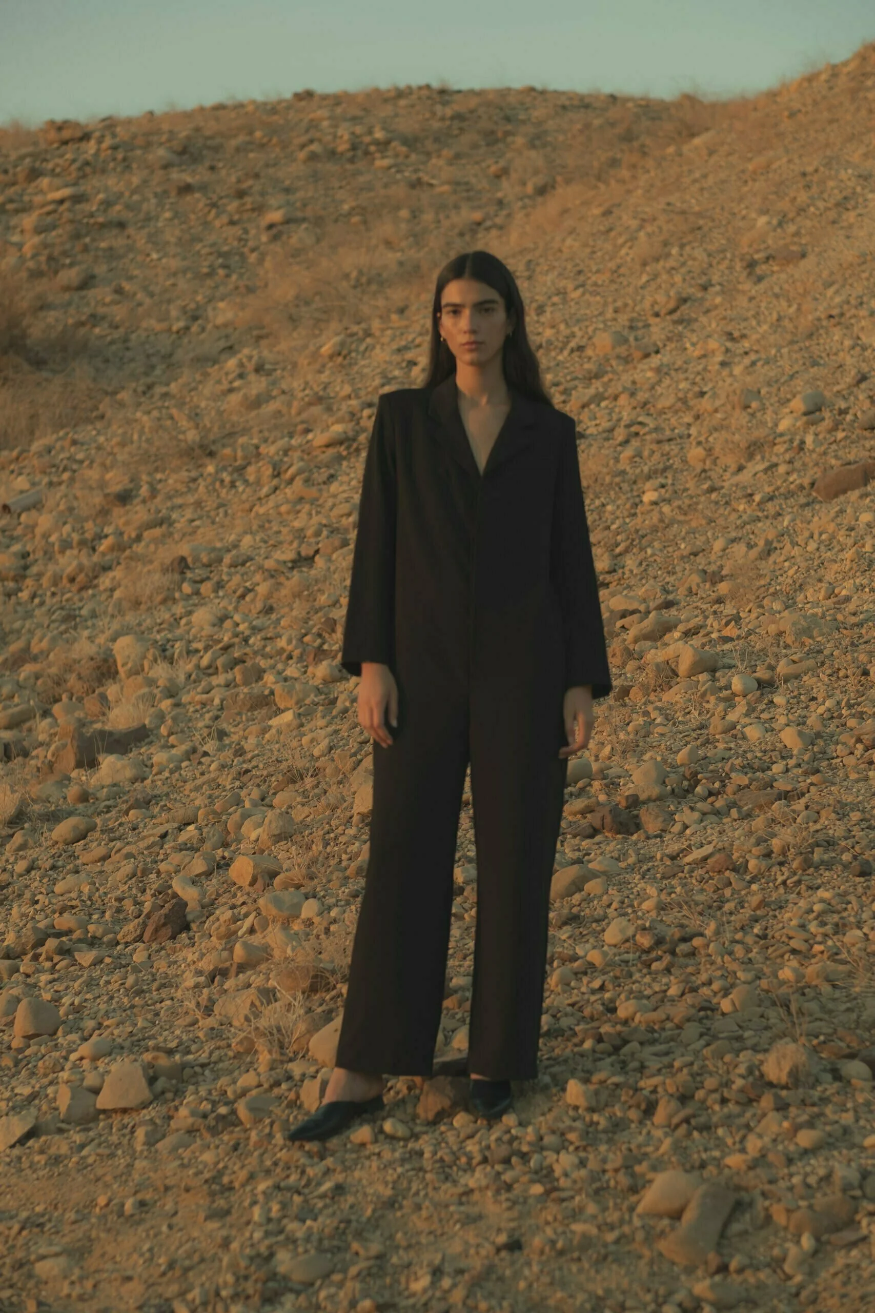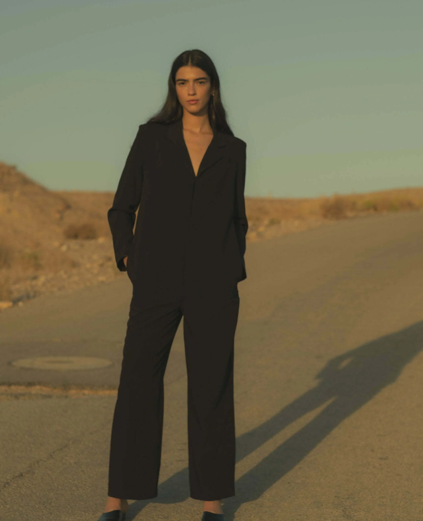 • TOMI jumpsuit has a blazer inspired bodice complete with structured shoulders